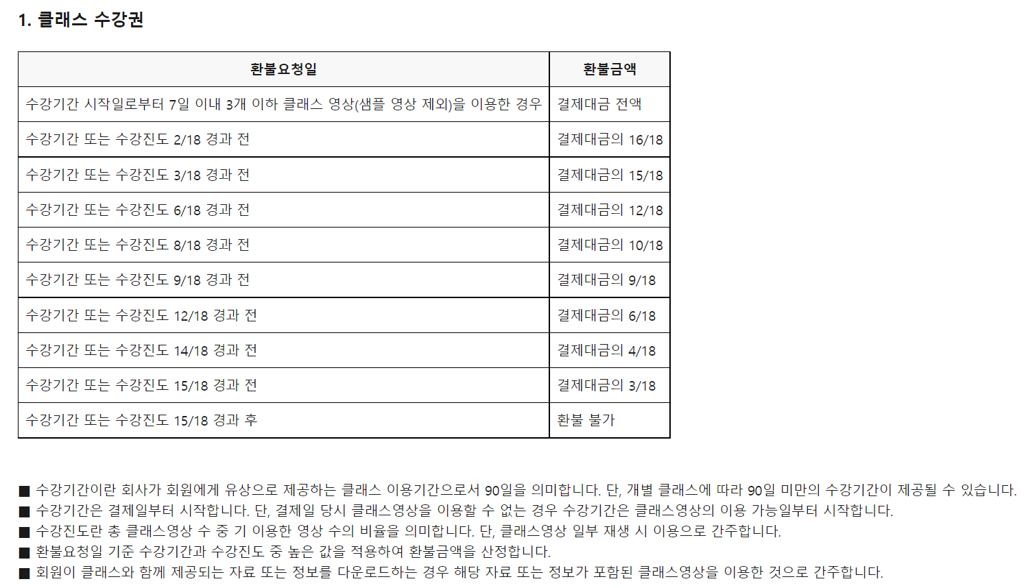이럴때 클래스 수강권을 환불하는 규정 및 기준은 어떻게 되는지 알아보자.