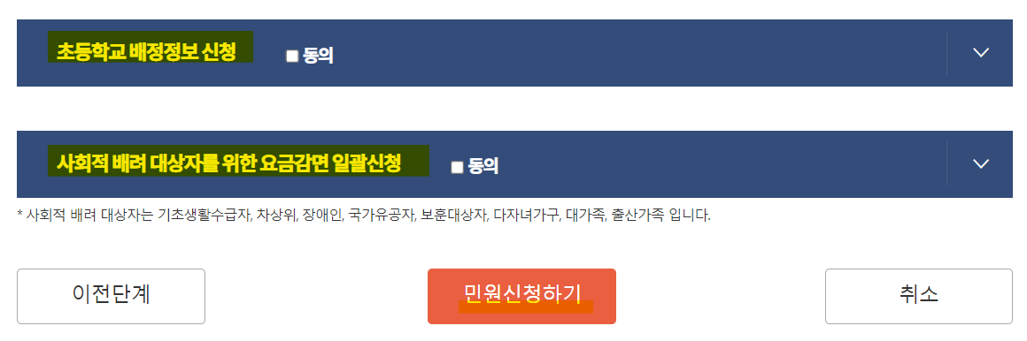 민원 신청버튼을 누르면 신청 완료!