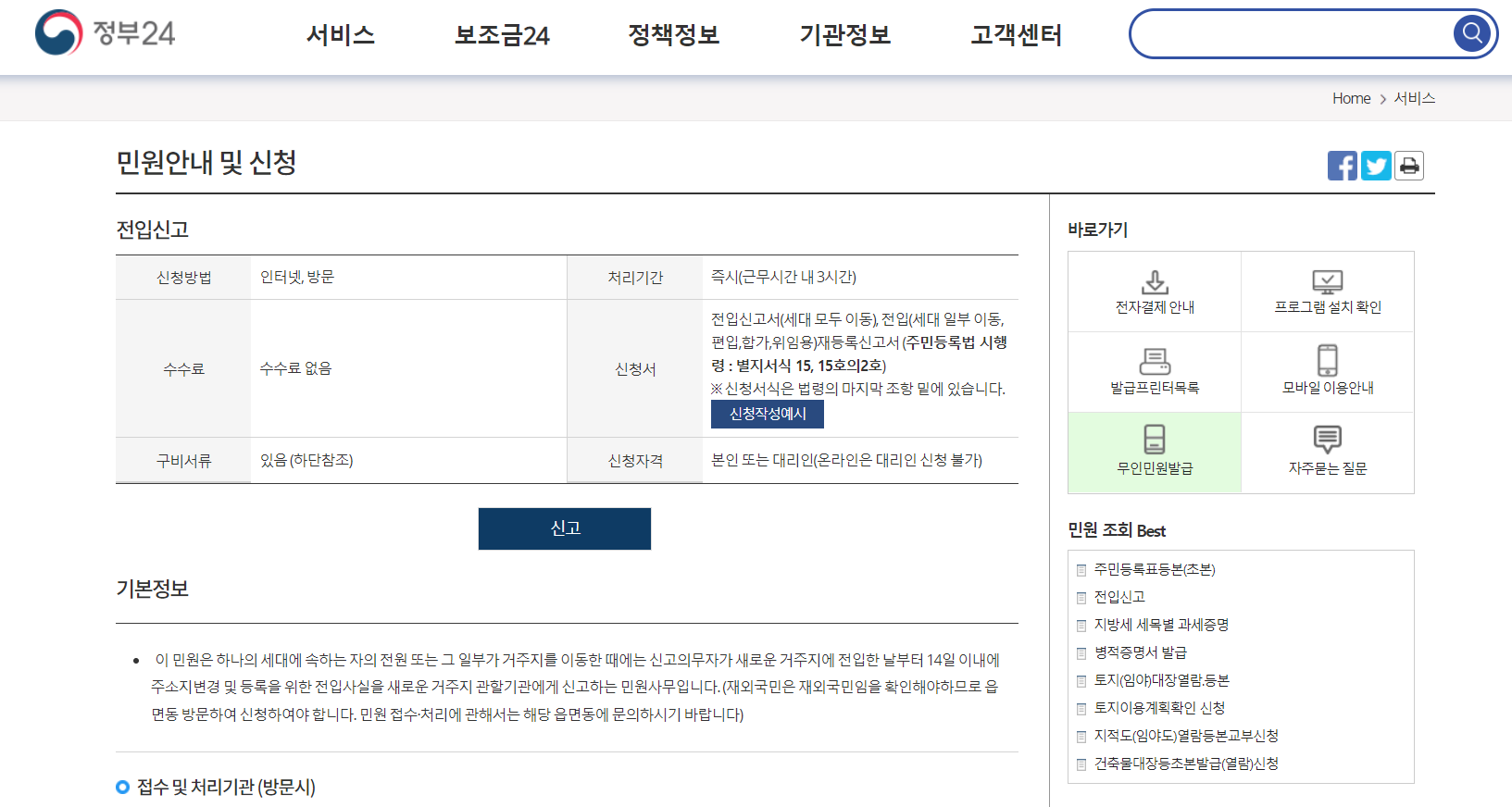 전입신고 | 민원안내 및 신청 | 민원24 | 정부24